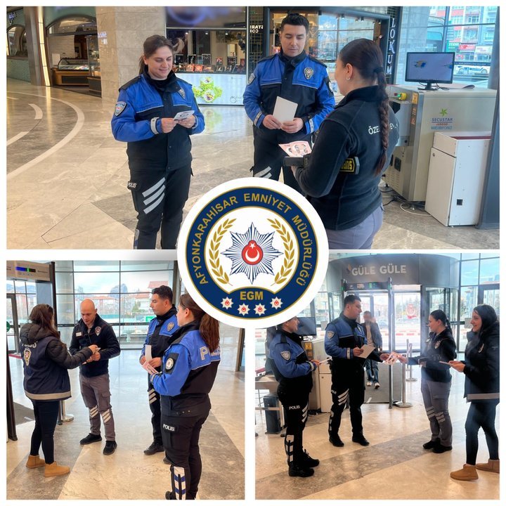 Bu kapsamda, il genelinde faaliyet gösteren eğitim kurumları, alışveriş merkezleri (AVM'ler) ve hastanelerde görevli özel güvenlik görevlilerine proje tanıtım broşürleri dağıtıldı. Afyonkarahisar Emniyet Müdürlüğü, toplumun huzuru ve güvenliği için her yaştan vatandaşa ulaşarak bilgilendirme ve bilinçlendirme faaliyetlerini sürdürmeye devam edeceğini belirtti.