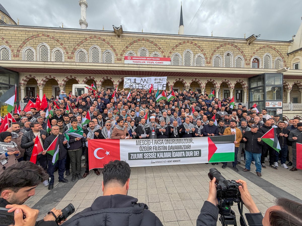 Arnavutköy Kaymakamlığı, Filistin davasına destek amacıyla Yeşil Cami'de bir basın açıklaması gerçekleştirdi. Basın açıklamasını Arnavutköy Kent Konseyi Başkan Vekili Av. Melik DÖNGELCİ yaptı. Programa; Kaymakam Mahmut HERSANLIOĞLU, Arnavutköy Belediye Başkan Yardımcısı Lütfü KIRMIZI, Belediye Başkan Danışmanı Kemal AYGENLİ, Arnavutköy Kent Konseyi Başkanı A. Menaf BATUR, Arnavutköy Belediyesi Muhtarlık İşleri Müdürü Ahmet Akif YILMAZ, siyasi parti temsilcileri, belediye meclis üyeleri, muhtarlar, sivil toplum kuruluşu temsilcileri ve çok sayıda vatandaş katıldı.