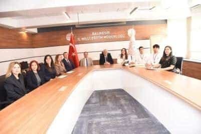 Bu önemli başarıya imza atan öğrenciler Eylül TÜRKTEN, Mustafa Baran İÇUZ ve Naim Ege GÜNDÜZ, danışmanları İngilizce Öğretmeni Nezahat BARBAROS, Yiyecek İçecek Hizmetleri Öğretmenleri Özgenur SAVAŞAN ve Yıldız Altın ÖZKARACA ile birlikte Okul Müdürü Osman GÖNÜLAL, İl Milli Eğitim Müdürü Sayın Selehattin KAL'ı makamında ziyaret etti. Ziyarette İlçe Milli Eğitim Müdür Vekili Sayın Harun BİLAL de hazır bulundu.